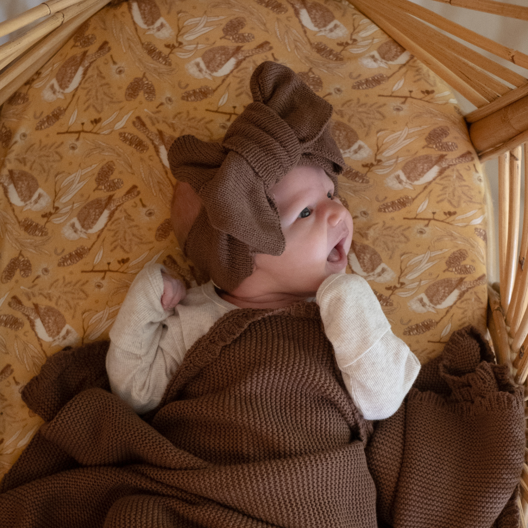 Keep baby cosy and cute in our oversized headband bow. Handmade from soft 100% organic cotton. Soft, stretchy and comfortable. Sizing is adjustable - you can tie it as you wish!