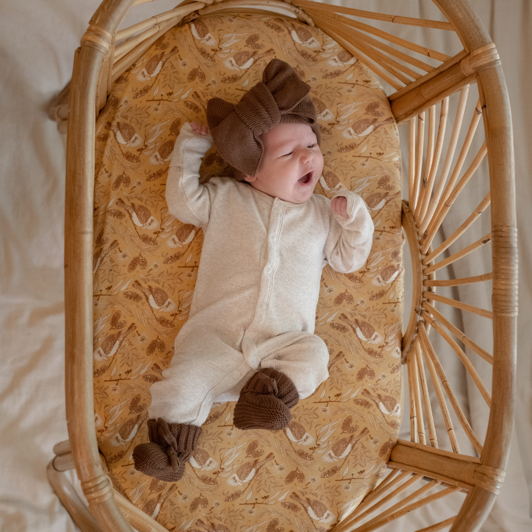 Keep baby cosy and cutie in our knitted booties. An adorable set for announcement photos. Handmade from soft 100% organic cotton. Booties have an adjustable drawstring around the ankle to tighten to avoid slipping off.